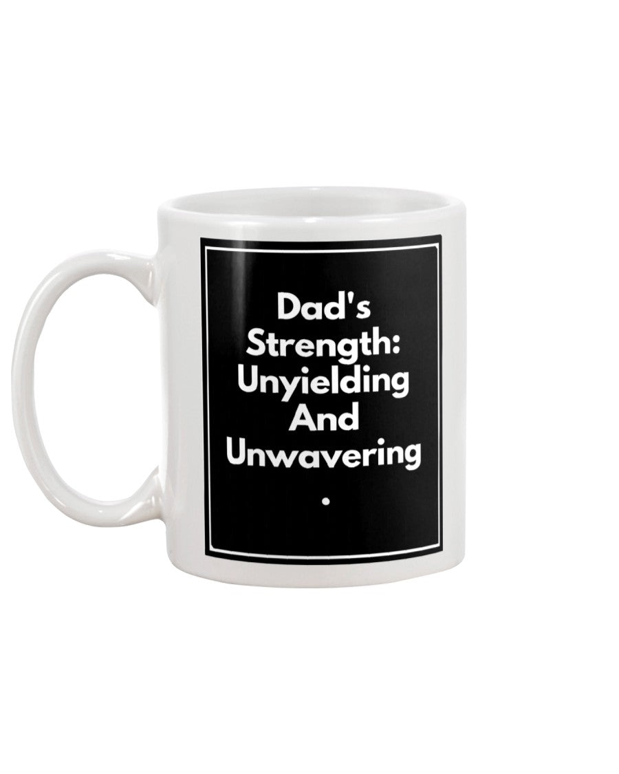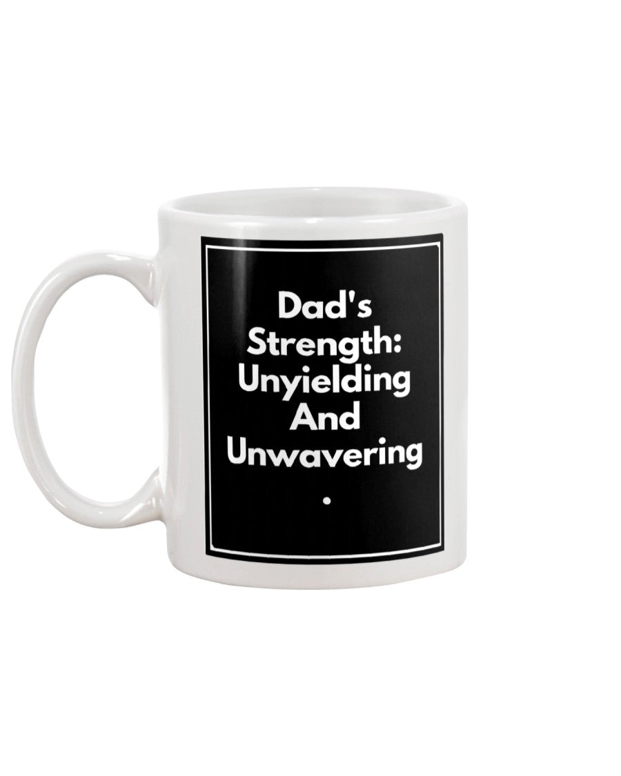 Funny Dad Coffee Mug - Dad's Strength: Unyielding And Unwavering.