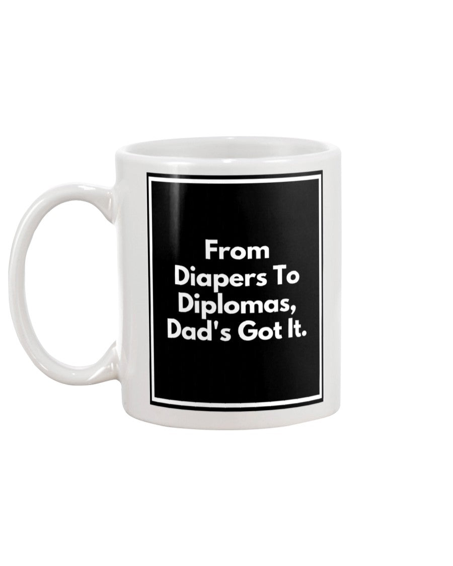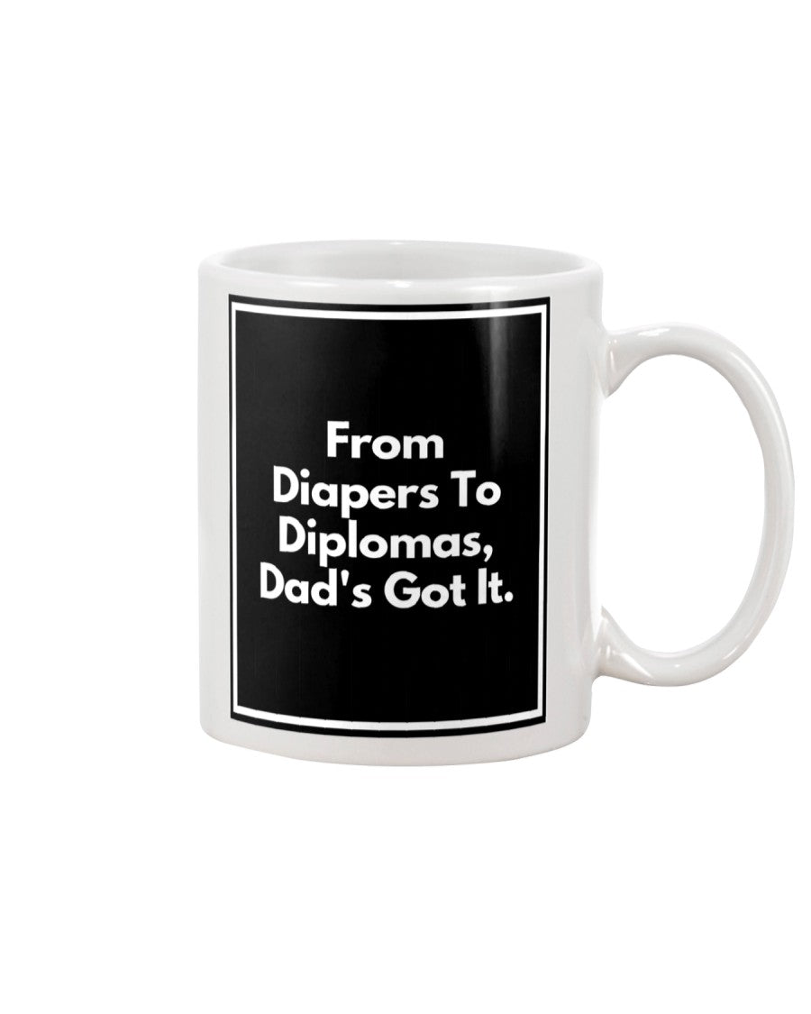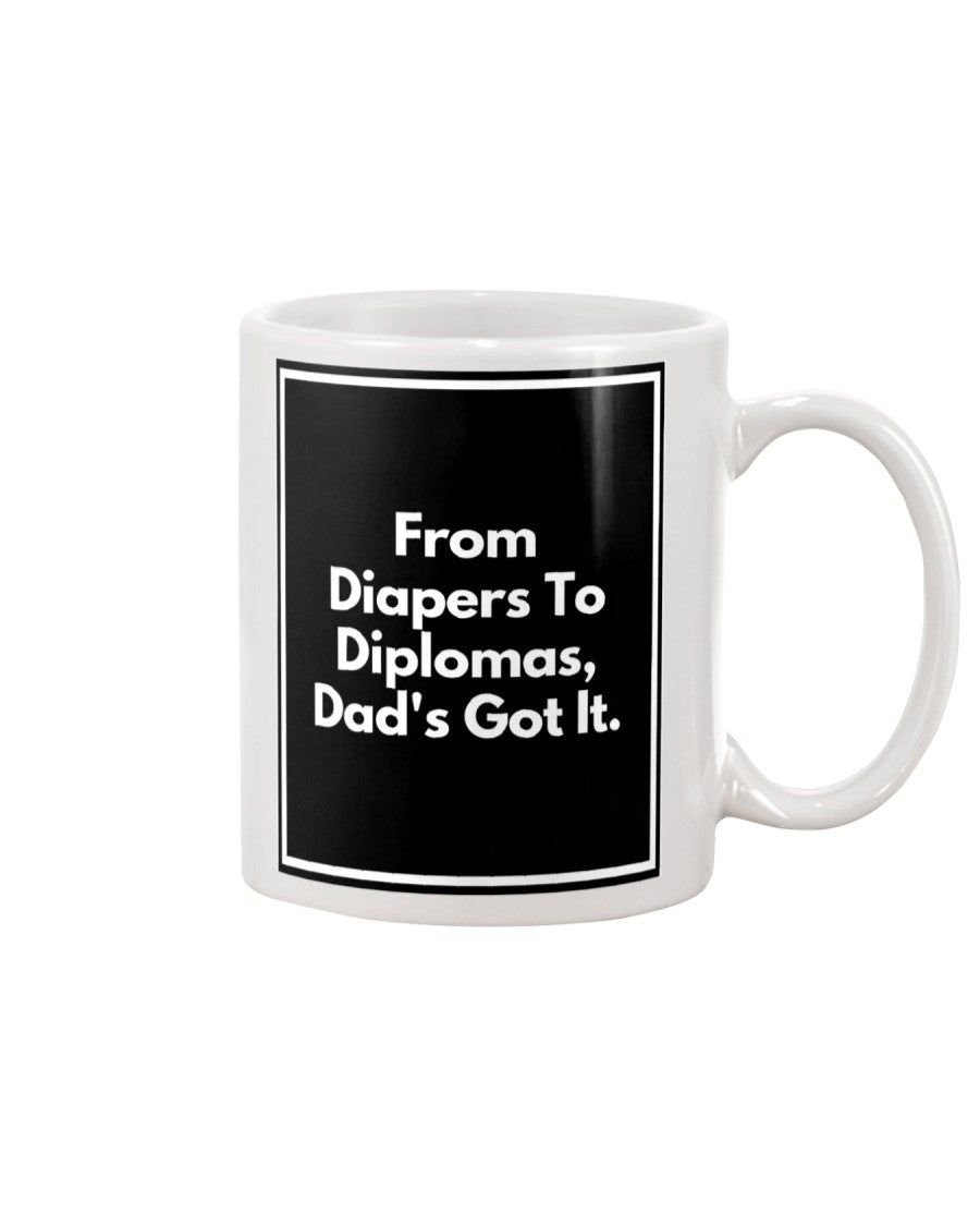 Funny Funny Dad Coffee Cup - From Diapers To Diplomas, Dad's Got It.