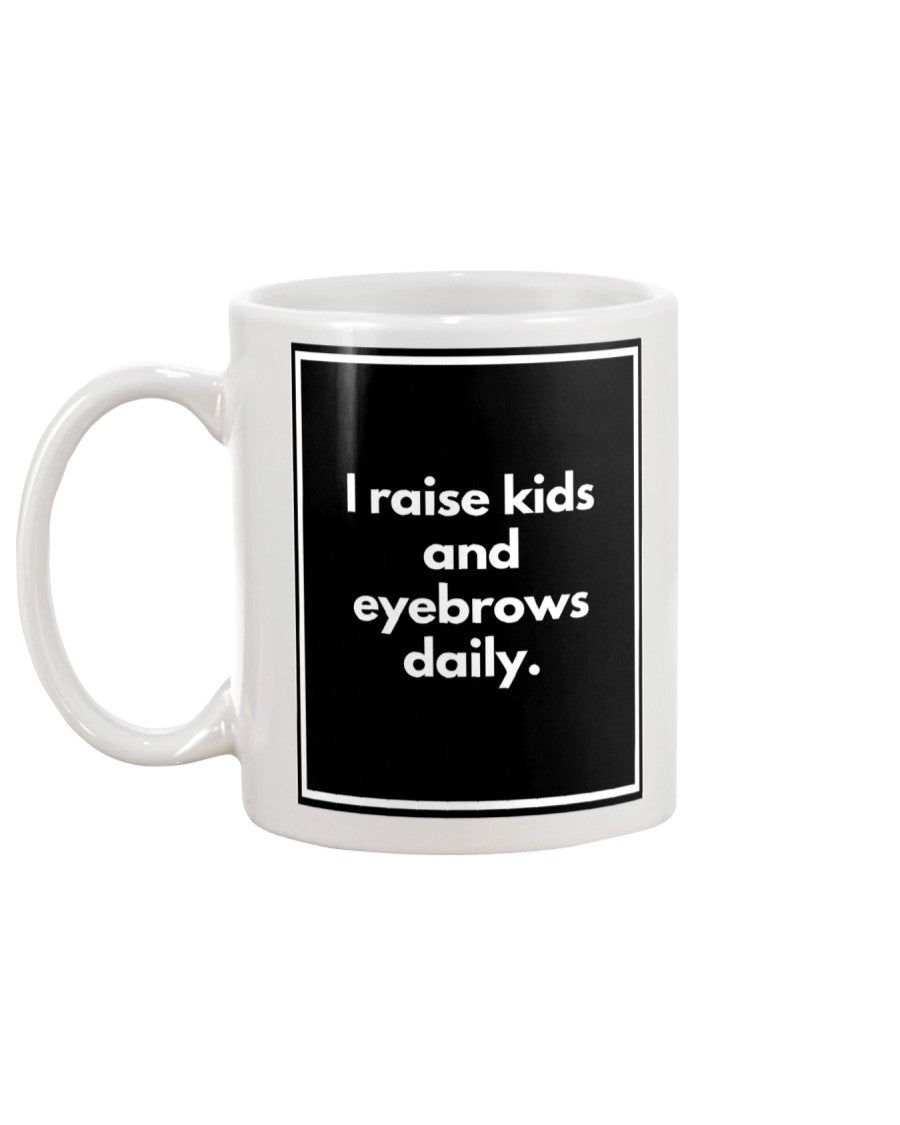 Funny Mom Coffee Mug - I raise kids and eyebrows daily.