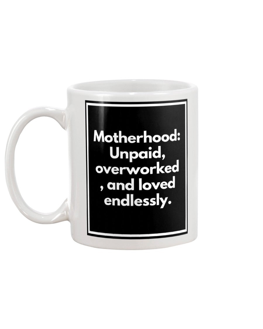 Funny Mom Mug - Motherhood: Unpaid, overworked, and loved endlessly.