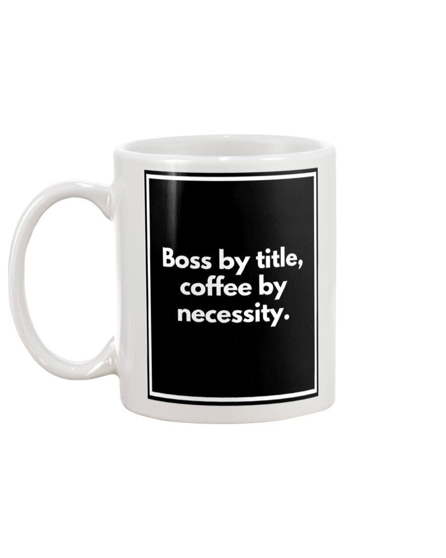 Funny Mug For Your Boss - Boss by title, coffee by necessity.