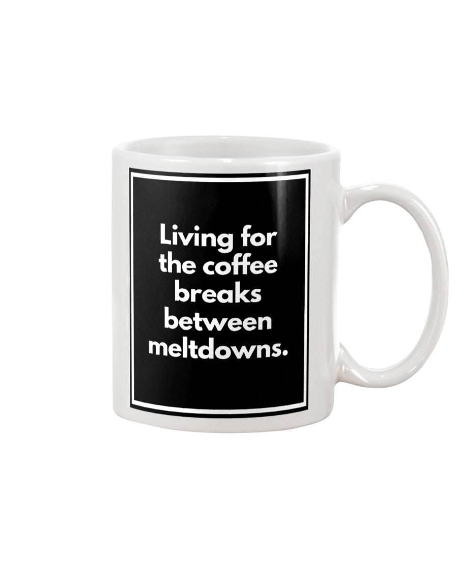 Mom Mug Funny - Living for the coffee breaks between meltdowns.